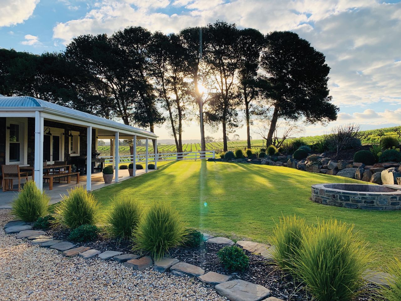 Le Mas is owned by a French Australian family: matriarch Marie France, her daughter Geraldine who is founder and director, and Geraldine’s husband Llewellyn who oversees the vineyard and winemaking. Together, they’ve blended French aesthetics with Barossa Valley heritage to great effect. We wander outside the sandstone walls and onto a terrace overlooking the sloped lawn, grenache vines everywhere you look, enveloping the whole property. An immaculate boxwood maze ominates the garden, with a heated mineral pool tucked under the trees beyond. Truthfully, the kookaburras are the only things giving it away that I’m not in France. The next day, after a delicious breakfast of practically every break